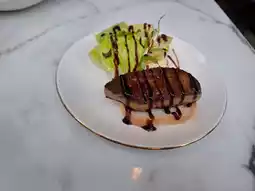 香煎鹅肝外酥里嫩,口感浓郁,搭配底部香脆翠绿的吐司,淋上香醋,风味平衡。🧡