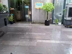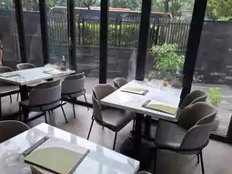 餐厅外面也有用餐区😍 环境安静优雅,室内外都有座位。虽然室内空间不大,但以灰色为主色调的时尚装潢,加上开放式厨房,营造出轻松舒适的氛围。🥗