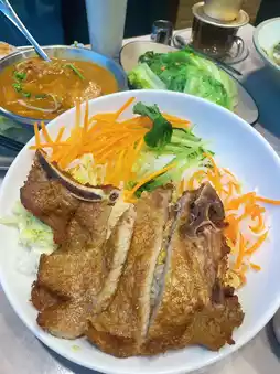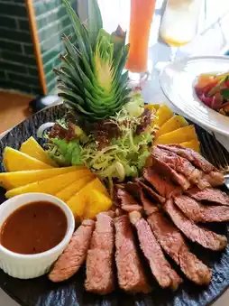 肉质鲜嫩,带有淡淡的烟熏焦香,搭配酸甜的烤菠萝,口感丰富。🥘