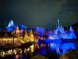 ❄️ 对于摄影爱好者来说,千万别错过阿伦黛尔城堡和友谊喷泉。这里白天和夜晚都有很多绝佳的拍照地点(圣诞灯光尤其柔和美丽)。您可以漫步其中,购买纪念品,还可以去安娜和艾莎主题咖啡馆逛逛。🍽️