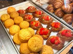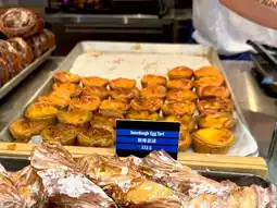标志性酸面包蛋挞:其招牌酸面包牛角包式蛋挞已成为香港的传奇美食。酥脆的黄油挞皮包裹着丝滑的卡仕达酱,绝对不容错过。许多游客表示,新鲜出炉的挞的香气吸引着他们——即使这意味着要排队。一位Reddit用户惊叹道:“简直太棒了……比澳门的还要好吃!”
