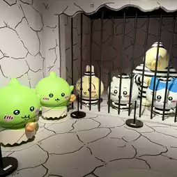 展览分为三个主要售票区:千川的日常生活(室内展厅)、巨型食物森林雕塑公园(室外雕塑公园)和终极之战!经典场景服装展示(户外派对区)😆 室内区域重现了经典漫画场景,例如网吧和香港独有的点心空间🤣 高级套装包含一个带有互动体验的RFID发光战斗棒‼️ 户外还有一个9米高的巨型充气雕塑,非常适合拍照🥹