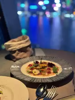 我们点了两份三道菜套餐,说明是分享的,服务员服务周到,每道菜都更换了餐盘和餐具,还额外准备了一套公用餐具供我们分享。