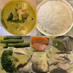 2. 泰式绿咖喱鸡饭 68 美元 + 冰泰式奶茶 5 美元 (9/10)