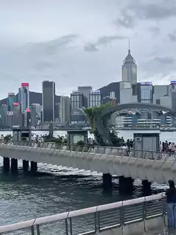 这是香港维多利亚港的观景点。我们的照片是在尖沙咀拍摄的,尖沙咀是游客的热门购物区。它毗邻喜茶(Heytea)的K11,喜茶是著名的中国茶品牌。景色令人叹为观止,气氛也十分宜人凉爽。我们傍晚去的,所以阳光并不强烈。这里是享受凉爽微风、放松身心的绝佳去处。如果您觉得有点热,也可以去隔壁的K11逛逛。那里有各种各样的餐厅和品牌商店可供选择。