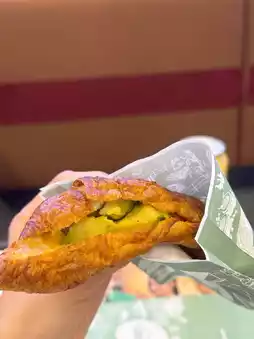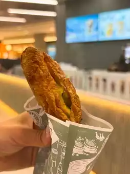 新鲜出炉,热气腾腾!牛角包外酥里嫩,搭配顺滑的牛油果和香喷喷的碎鸡蛋,口感丰富💕 整体味道非常协调,很适合早餐或下午茶,点一份牛角包再配一杯豆浆🥤