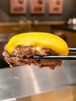 🐮原味和牛汉堡:师傅煎至八成熟,放在铁板上滋滋作响,声音超级治愈,一口咬下去,肉汁爆浆!和牛牛肉口感紧实松软,浓郁的牛肉风味在口中久久萦绕