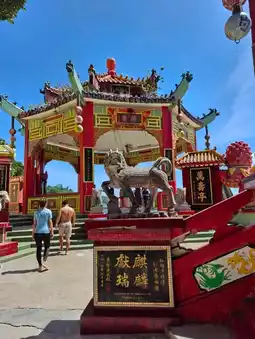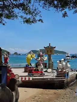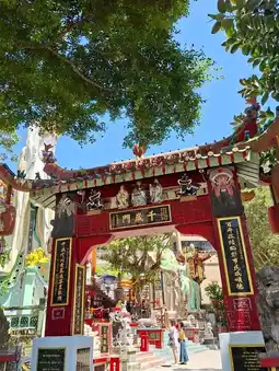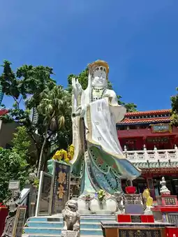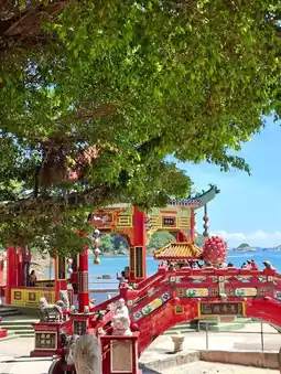 天后宫(意为“海神”)名副其实。它坐落于海滨,供奉着各种神像,神像端坐于海龟和鱼背之上。😁 庙内供奉着色彩鲜艳的大型观音菩萨像、桑卡猜佛像以及其他各种神像。这里是祈求健康、爱情和好运的绝佳场所。最引人注目的是面向大海的白色观音像,营造出宁静祥和的氛围。观音像上方还有一座红色的桥,据说可以祈求长寿。您还可以向金鱼的嘴里投掷硬币。