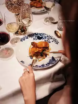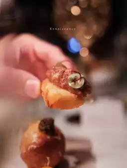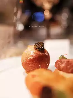 :鱼子酱贝涅饼——中式西式糕点。咬开酥脆的外皮,咸蛋黄在口中爆开。搭配浓郁的上海风味鱼子酱,咸鲜的鱼子酱与贝涅饼的绵密香气完美融合,带来层次丰富的味觉体验。