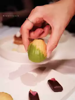 玛德琳蛋糕松软可口,外层裹着一层抹茶白巧克力。回味略甜;我希望抹茶味能更浓郁一些。 🤤