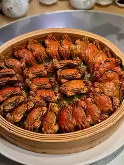 秋天来了🍁螃蟹季🦀✨,趁着中秋佳节和朋友们聚聚,去左边的中餐馆吃“席蟹宴”吧!1888元/12人,超级诱人又实惠😍!一份套餐包含24只大闸蟹(公母都有),每只蟹肉饱满,蟹膏爆浆🧡🧡🧡,蘸上醋更添鲜美,人人都吃得超级满足。还有5道开胃菜(五道长江以南的小菜),蒜蓉黄瓜、醋菇、香萝卜、姜汁猪手、鸡丝粉皮,最爱的猪手弹性十足,富含胶原蛋白。套餐里的汤是【干虾海参扇贝汤】,食材非常丰富,整个烹饪过程也十分讲究。四道菜分别是:清蒸蜻蜓配橄榄尖、古洞芝麻鸡、XO酱炒冰山贻贝和鲜番茄蘑菇蘸酱。主菜当然是秋季必吃的芋头猪肉糯米饭,糯米饭带着淡淡的烟熏味,酸甜可口🖤。最后,吃完螃蟹,甜点当然少不了:姜茶小汤球🍡,姜味浓郁,超级姜!!!吃起来热气腾腾,暖暖的💛,超级满足!!!趁着螃蟹季🦀,来所有钟厨/钟菜餐厅享受蟹黄盛宴吧❤️❤️❤️🥳。。。××× [崇彩餐厅] ××× © 湾仔轩尼诗道338号北海中心2楼。。#大港蟹 #大港蟹盛宴 #大港蟹🦀 #中餐馆 #湾仔美食 #铜锣湾美食 #尖沙咀美食 #蟹黄 #🧡 #💛 #🦀