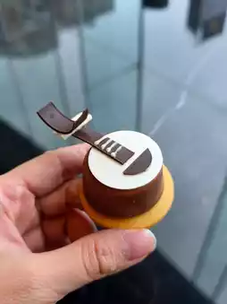 覆盆子牛奶巧克力慕斯蛋糕,造型宛如一把琵琶(中国传统乐器),经典的口味组合令人惊艳。蛋糕口感顺滑,入口即化。