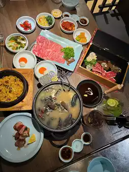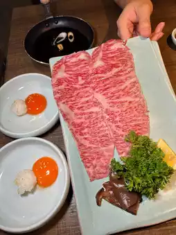一边享用韩式烤肉,一边品尝寿喜烧和牛,真是太幸福了!