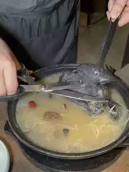 羊肚的菌香味非常浓郁。选用黑鸡制作人参鸡汤