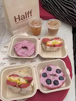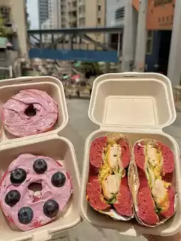这家店提供甜咸口味的贝果三明治,你可以自由搭配自己喜欢的口味和自制奶油芝士——每一样看起来(吃起来!)都超级棒😋