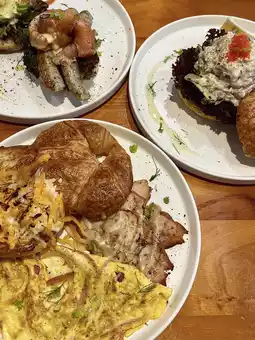 ⚪️ 他们的早午餐菜单种类丰富——从班尼迪克蛋到开放式贝果和牛角包——价格在50-120港币之间。