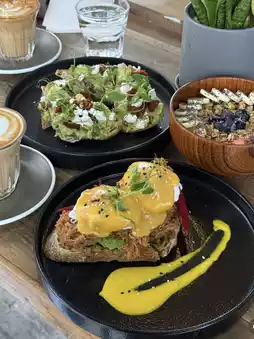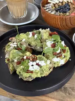 Blend & Grind 就藏在街角,半开放式的设计营造出极致的休闲氛围。我总是来这里,只为了一样东西——他们的巴西莓碗。它以酥脆的格兰诺拉麦片为底,上面浇上浓稠的混合莓果冰沙,最后点缀上香蕉片、蓝莓和草莓🍌🫐🍓。