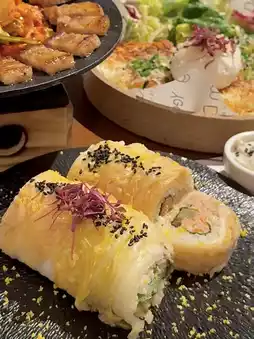 经典紫菜包饭的创意新演绎——用熟泡菜代替紫菜包裹!每一口都是软糯的米饭、鲜美的金枪鱼和爽脆的腌萝卜的完美融合——酸甜浓郁,令人难忘。🍑