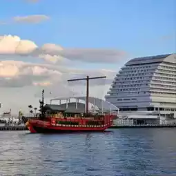 氛围轻松惬意,有时还能听到现场音乐,人们悠闲地在海湾边放松身心。这里是享用小吃、在 Umie 逛逛橱窗、或者坐在水边欣赏来往行人的绝佳去处。