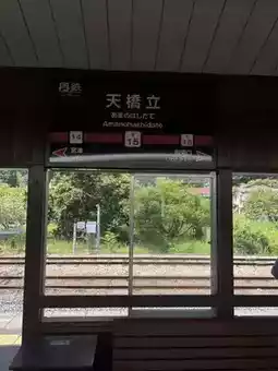 查询巴士时刻表,乘坐返程巴士前往天桥立站,从这里步行几分钟即可到达天桥立观景台。您可以乘坐起重机上山,欣赏日本三大名胜之一的天桥立美景,还可以体验独特的“倒立观景台”🤭