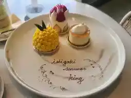 点完三款蛋糕和一杯奶冻后,请在座位上稍等。休息室的工作人员会用心将蛋糕摆放在大盘子上,并根据您提前的要求写上文字。