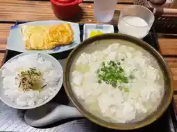 “狩寿司套餐”包含玉子烧、豆渣、豆浆和一小碗米饭,仅售550日元,性价比超高!坐在露台上,可以欣赏甘蔗田的景色,享受轻松惬意的早晨时光。桌上还提供酱油或味噌,可以为您的早餐增添更多风味!
