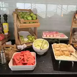 食物也很棒,提供各种热菜,例如肉类、沙拉、水果(西瓜和苹果)以及蛋糕。(^^)!