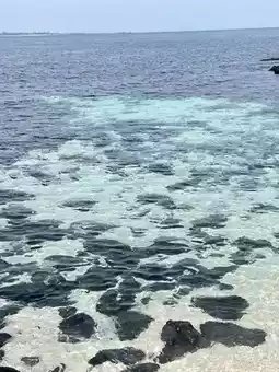 ,这里的沙滩洁白如雪,海水湛蓝清澈。阳光照射下,海水呈现出深浅不一的蓝绿色,美不胜收。这片海滩最特别之处在于它的“白沙”。近看,沙滩洁白如雪,却并不细腻,反而像贝壳一样凹凸不平。牛岛西彬白沙的“白沙”其实并非真正的沙子,而是由红藻构成,十分奇特。
