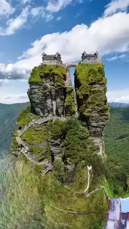 **红云金顶**:梵净山的标志性景观,一座巍峨的山峰被裂缝一分为二,由一座桥梁连接。站在山顶,可以俯瞰翻滚的云海,仿佛置身于天宫之中。