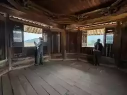 攀登陡峭狭窄的木阶,来到二楼和三楼。