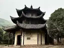 这座古老的三层连体建筑形似宝塔,