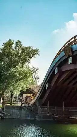 “清明江秘境”名副其实,它并非简单的古代建筑复制,而是1:1还原的惊艳之作,将张择端的传奇画卷栩栩如生地呈现在观众眼前,打造了中国规模最大、制作最精良的宋代实景拍摄地。步入其中,时间仿佛悄然折叠——千年古桥横亘于脚下,榫卯结构的木梁间,汾江货船的鸣笛和桨声仿佛仍在回荡;玉楼亭台楼阁林立,朱漆雕花栏杆,层层叠叠的屋檐,完美再现了《梦东京》中的繁华景象。街巷间,招牌随风飘扬