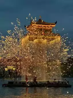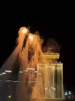 💥铁花表演时间:晚上7:05(宝鱼塔)、晚上7:25(音乐广场)、晚上9:30(宝鱼塔) 滚烫的铁水瞬间化作空中璀璨的金色花朵,美得令人窒息!现场气氛激动人心,千万不要错过!