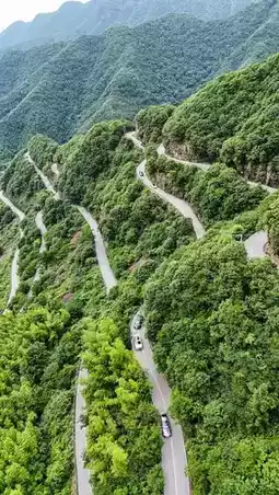沿着安徽南部的西藏线蜿蜒山路行驶,陶陵六弯的急弯如同丝带般环绕着群山。车轮划过云雾,俯瞰着生机勃勃的翠绿山谷。