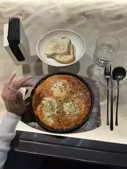 一到餐厅,我就忍不住点了他们的招牌菜Shakshuka——一道用香料番茄酱烹制的中东鸡蛋料理。光是这道菜的摆盘就足以让人期待一场美味盛宴,而之后端上来的意想不到的甜点更是让我惊喜不已。这里的用餐体验就像一场小型戏剧表演——绝对是美食爱好者的天堂!餐厅