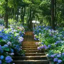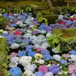 • 明月院:被称为“紫向日葵寺”,神社周围盛开着2500株蓝紫色花朵,寺庙建筑风格神秘庄严,花期为5月中下旬至7月。