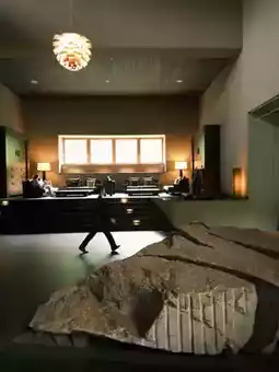 隈研吾的光影魔法:整个度假村采用半透明混凝土,午后可投射出樱花枝叶的斑驳光影。