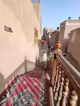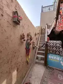 高台民居,这座被誉为“活民俗博物馆”的维吾尔族聚居地,依山而建,层层叠叠的土坯房经受了数百年的风雨侵蚀,依然坚固如初。步入其中,映入眼帘的是精美的木雕亭台、鲜艳的蓝色门窗以及别具特色的传统纺织品。庭院里洋溢着热闹的日常生活气息,而售卖民族饰品和饮品的特色小店则增添了一抹现代气息。这种古今交融的景象,展现了喀什独特的历史魅力和蓬勃的文化活力