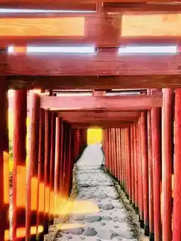 那天天气很热。我从佐贺搭乘巴士前往稻荷神社,沿途经过稻田和村庄。神社的气氛非常宜人。风铃小径、千鸟居,以及俯瞰小镇的奥宫,都让我感到无比舒畅。我终于在这里获得了御朱印和护身符,疲惫的身心也随之焕然一新。狐狸雕像也十分可爱,让我忍不住想要多待一会儿。