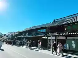 您的旅程将从一番街开始,这条充满活力的街道仿佛带您穿越回过去。街道两旁林立着江户时代的建筑,您可以在这里感受历史氛围,同时享受现代商店和咖啡馆带来的乐趣。标志性的仓库式建筑,以其独特的黑色砖墙外墙而闻名,也印证了川越“小江户”的美誉。在这里,您可以找到各种各样的商品,从传统的红薯糕等小吃到精美的纪念品,应有尽有。这条街可能会比较拥挤,但热闹的氛围绝对值得一游,因为这里的建筑和充满活力的街头生活都充满了历史气息。