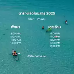 #一日游行程安排 2025年Koh Larn渡轮时刻表,票价30泰铢/人(成人和儿童均适用),步行上船购票,巴厘海码头,芭堤雅南部。