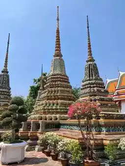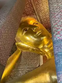 卧佛寺的卧佛是泰国最令人叹为观止的宗教圣物之一。这座宏伟的佛像长46米,高15米,通体贴满金箔,散发着神圣的光芒,吸引着每一位来访者。佛像宁静祥和的面容象征着和平与觉悟,使其成为一处充满力量的灵性景观。🦶