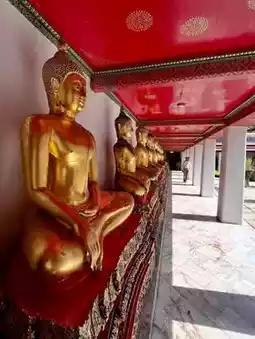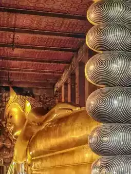 卧佛最引人入胜的细节之一是其精美绝伦的双足,每只足长达5米。足底镶嵌着珍珠母贝,并饰有108个吉祥图案,代表着佛陀的教义和通往觉悟的道路。千万不要错过近距离欣赏其精湛工艺的机会!