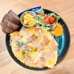 氛围轻松舒适。Octo Bites 真的是个适合家庭聚餐的好去处。这里食物和设施一应俱全。我们点了蘑菇火腿煎蛋卷、鸡肉沙士、抹茶拿铁和澳白咖啡。下单后上菜速度很快,服务员热情周到。