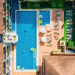 三种不同风格的漂亮泳池,可免费进入水上乐园,泳池内还设有滑梯!