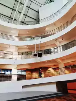 美术馆建筑融合了马来传统与现代设计,设有五个展厅,分别展示本地和国际艺术家的作品。美术馆