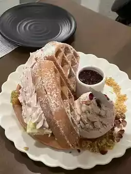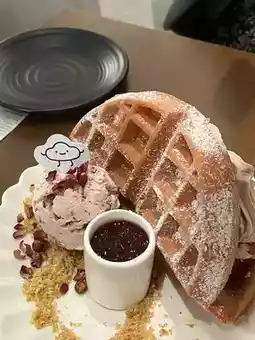 拥有吉隆坡最棒的华夫饼之一——外酥里嫩,淋上梦幻般的冰淇淋和酱汁😍