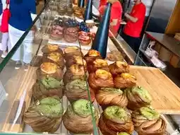 KLCG 坐落于一栋迷人的历史建筑内,完美融合了历史韵味与现代烘焙技艺。它不仅是一家提供精致糕点和酥脆甜点(例如蓝莓奶油芝士丹麦酥)的烘焙店,更是一个展示艺术与文化的画廊。顾客可以在装饰着复古照片和文化商品的砖墙间品尝美食,沉浸于吉隆坡的艺术、文化和咖啡氛围之中。#你好万圣节