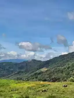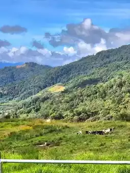 农场位于昆达山的高地,所以沿途的风景非常优美。离开市区,沿着蜿蜒的山路向上行驶,渐渐地,云雾仿佛靠近了云层,广袤的草原和连绵的山峦映入眼帘。即使坐在车里,我的心也开始怦怦直跳。空气清新怡人,我轻轻打开窗户,一阵凉风拂过脸庞,那一刻,仿佛逃离了日常生活,进入了一个截然不同的世界!🐄
