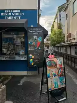 这款独特的蓝色冰淇淋,颜色酷似牛仔布,是到仓敷旅游的必尝之选。除了牛仔布冰淇淋,他们还提供各种牛仔布主题的小吃,包括饮品。这款冰淇淋是苏打口味的,清爽可口,令人回味无穷!